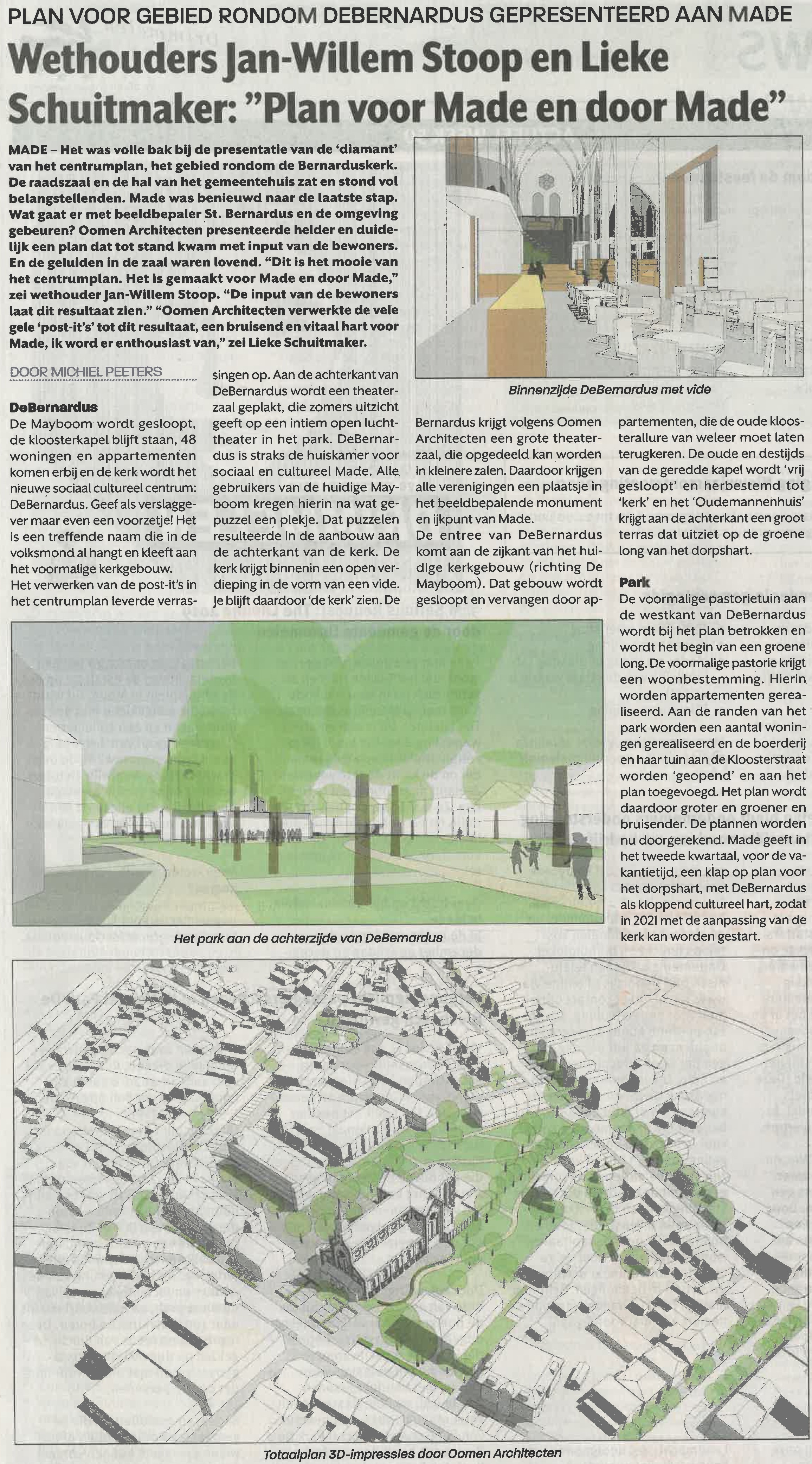Een aanbouw aan de kerk, gedeeltelijke sloop van de Mayboom, 48 nieuwe woningen en meer groen. Het plan voor de invulling van de Madese Bernarduskerk en omgeving is af en werd gisteravond gepresenteerd aan de bewoners.